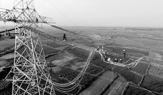 7月26日,“西電東送”山西晉北至江蘇南京±800千伏特高壓直流輸電線路安徽境內起頭放線施工。